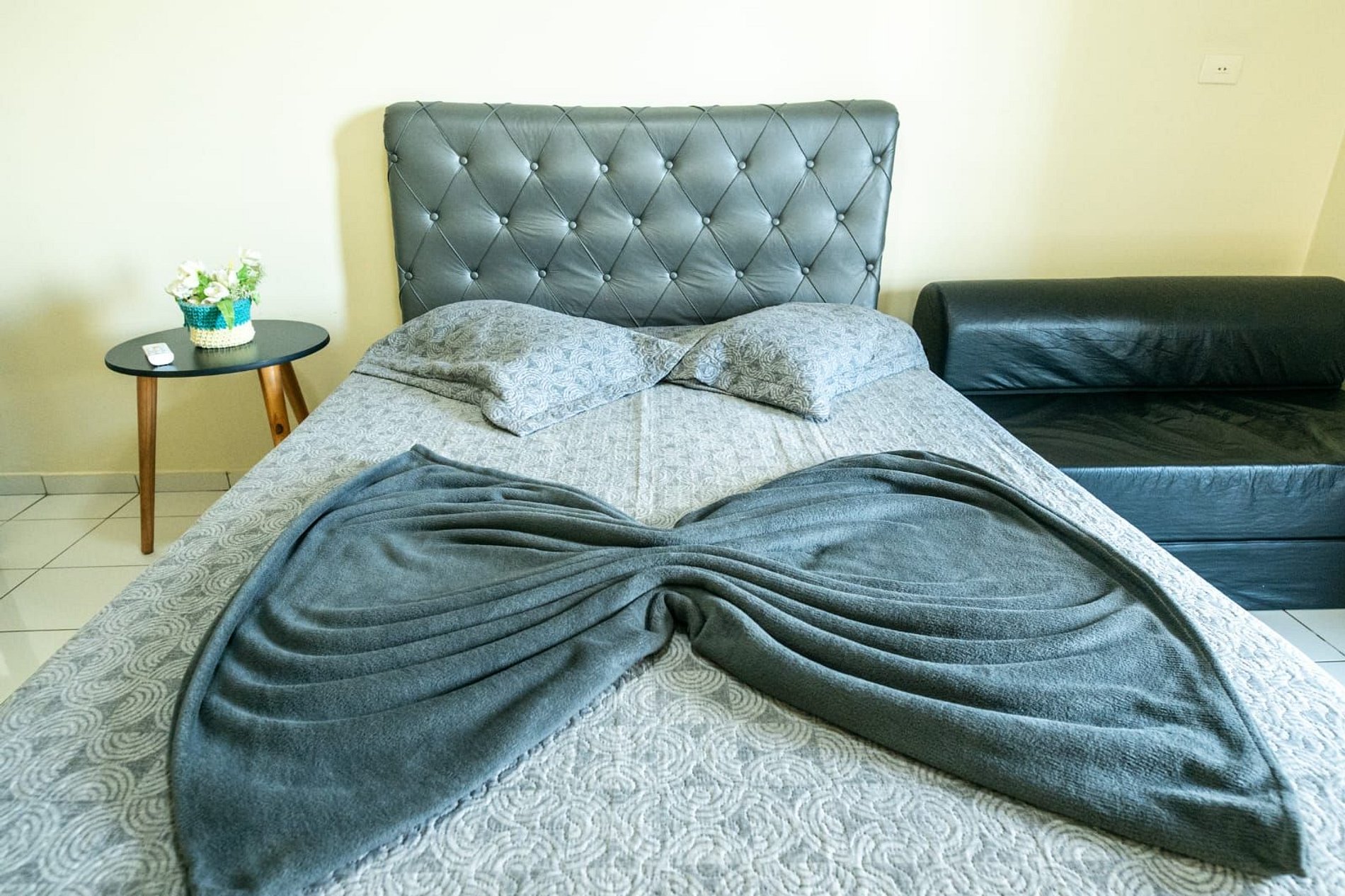 Apartamento com varanda com uma bela vista MAR, ambiente familiar em apartamento amplo de 65m², cozinha americana e integração com a sala de estar, cozinha bem equipada e completa e dormitório com ventilador e ar condicionado. Acomoda bem até 6 pessoas.